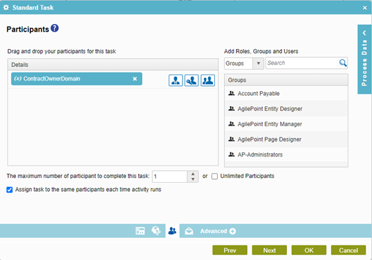 I then assign the task to the ContractOwnerDomain