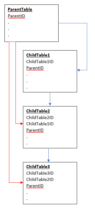 I have 4 database tables that are related (see attachment). Note that I only added the relationships in red so that AgilePoint would see these tables as a true children and allow me to include them in the datasource of the form.
