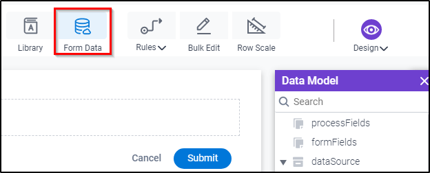 The selected tables/data sources will be available in the data model panel in the form designer canvas.