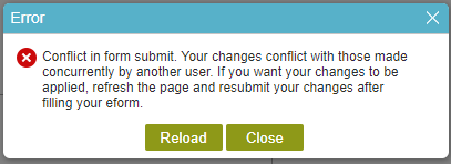I understand that the "Conflict in Form Submit" error happens when two submissions were done in the same process instance (i.e. both users open an eForm at the same time, when a first eForm is submitted, the second one gets rejected since the data in the model was changed by what was submitted in the first eForm).