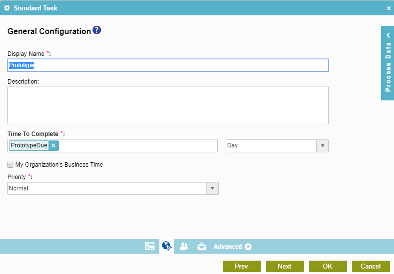 However I looked at all of the configuration of the DateDiff shape and found nothing wrong. So I looked at the Prototype activity itself. We are using an integer process data variable from the DateDiff shape to assign the Time To Complete in the Prototype shape. The manage center shows that it took the value of the process data variable. In our case it is 66 days (s=66), which was correct.
