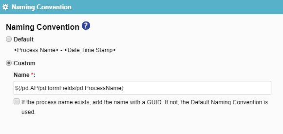 One thing I would suggest to Valerie would be to try to use some other field values from your process in the naming convention to ensure the process instance name is unique. The process you showed in your post appears to be a Time Off Request. Perhaps you can add the requester's name to your naming convention and maybe combine that with the date that they are requesting off.