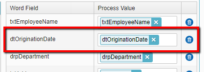 The Word field is mapped to the dtOriginationDate form field.