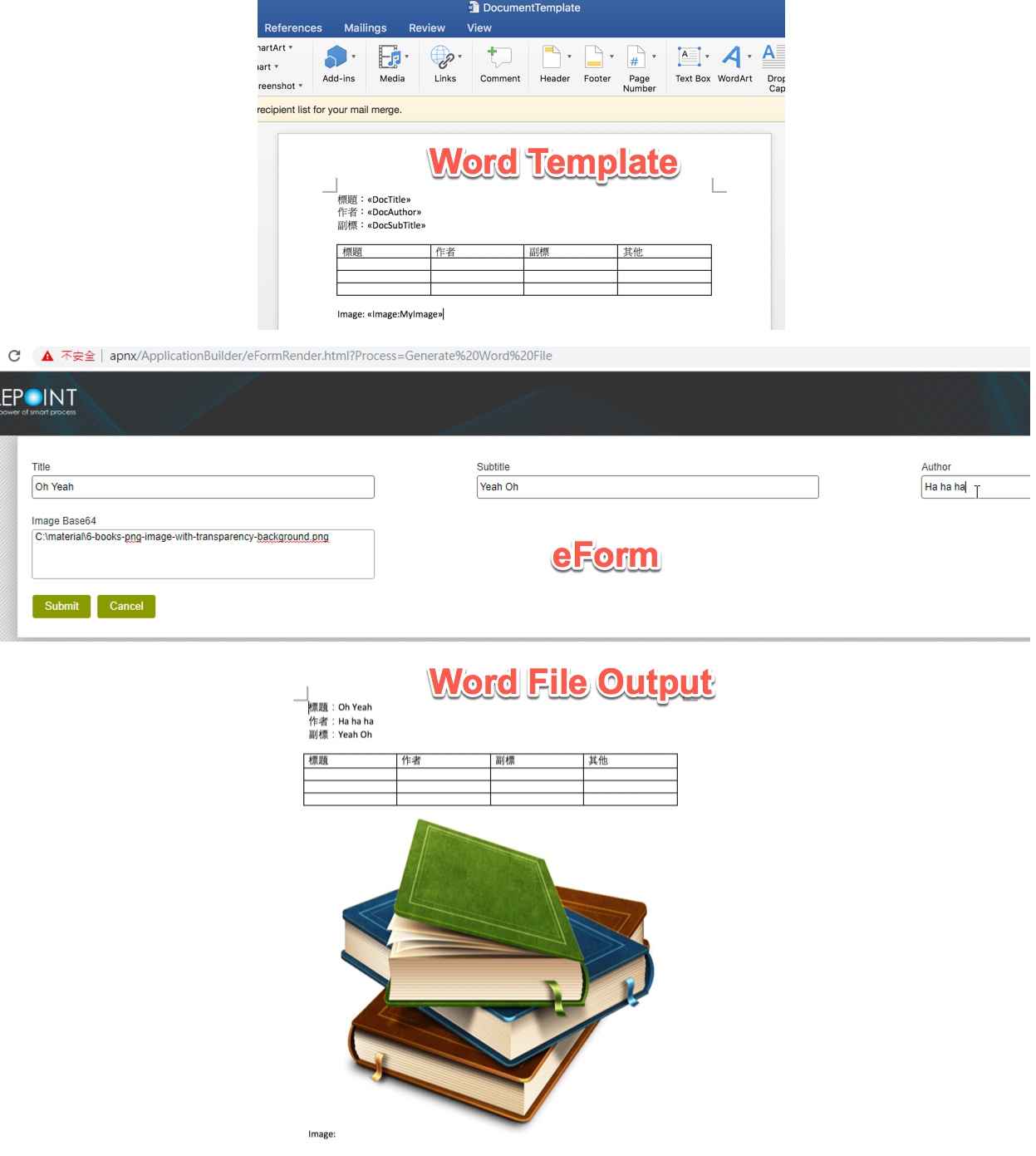 If I have a word template and need to create word doc from agilepoint fields plus signature drawer field how do I do that. Merge field technique is not taking signature drawer field. It send below data to word doc-