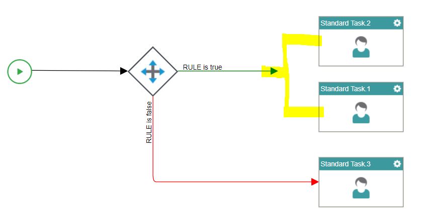 I have a condition for which I have set up a boolean; when the rule is true I want to have 2 parts connected to the true-connector. Any ideas if this can be done, and if not, how to recreate this?