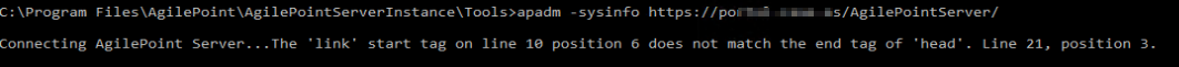 The URL in apadm command is the Server Instance URL (wsHttp). In my environtment setting pages it show the value http://xxx:13487/agilepointserver, but it didn't worked.
