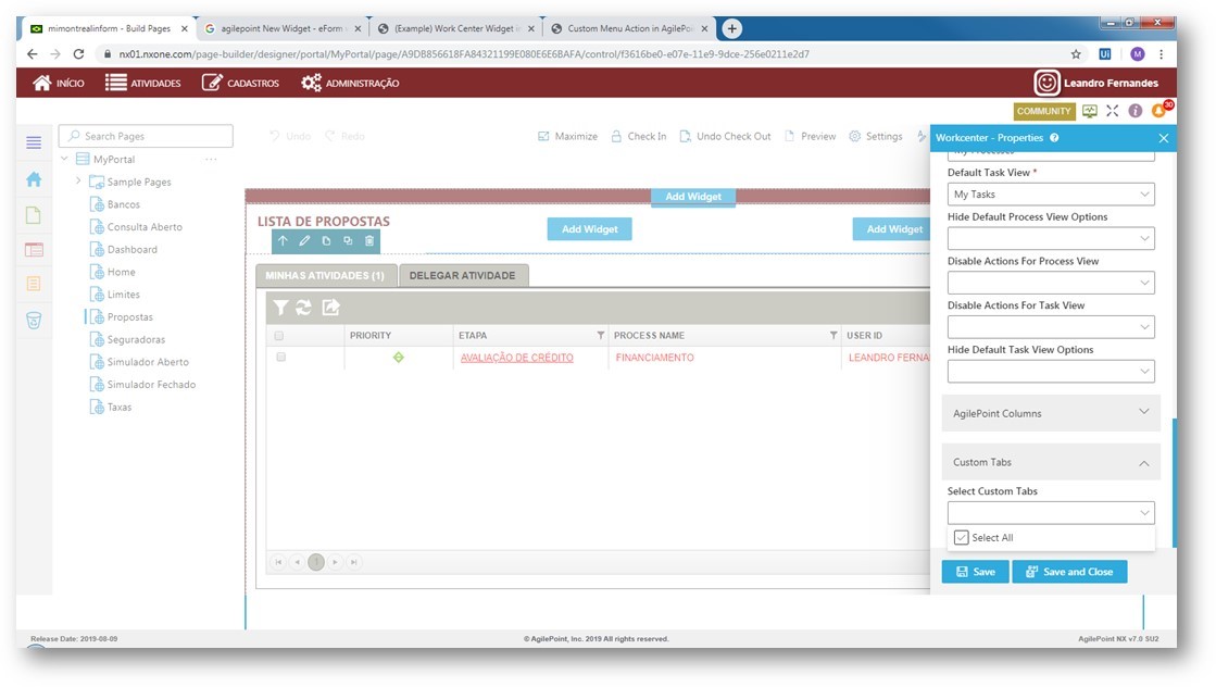 About the new feature os AgilePoint “custom tab and columns”, i have a case about this.