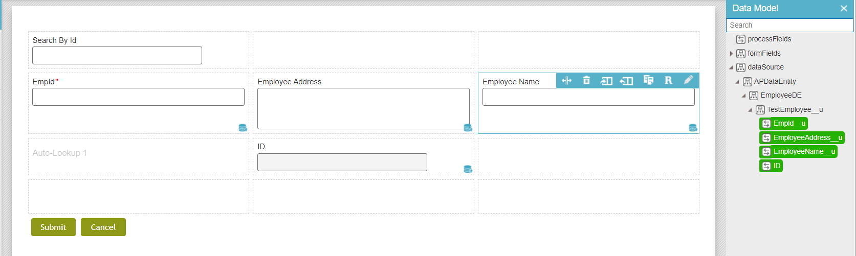 Choose the Primary Data Source for the Application and map those fields on to your eform. Please refer the attached screen capture for reference.